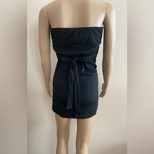 Strapless Black Mini Dress with Gold Sequin & Button Design on Front. Tie at Back