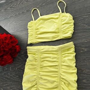 Lemon Yellow Ruched Set – Top & Skirt Summer Fit