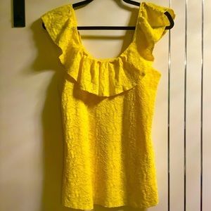 Bright lemon yellow 🍋 cool lined lace top off the shoulder.