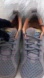 Material: The upper part of the shoe appears to be a combination of materials, likely including a suede-like texture in grey and a breathable mesh material in a patterned weave, also in grey.