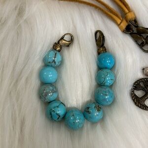 The leather necklace is adjustable to whatever length desired. Lobster clasps allow for the different charms to be worn.