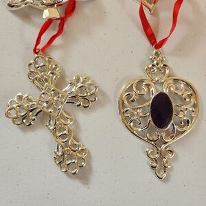 Lenox Bejeweled Silverplate Christmas Tree Ornaments Lot Of 7 Gem Crystal Cross