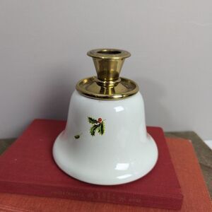 Lenox Holly berry bell shape candle holder taper candlestick ceramic Christmas
