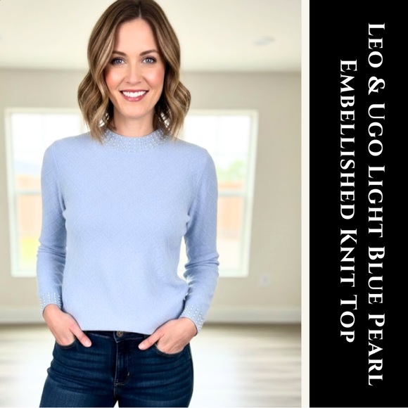 Elevate your wardrobe with this stunning Leo & Ugo knit top. Known for their Parisian flair, this piece features a delicate light blue hue and sophisticated pearl detailing that makes it perfect for the office, brunch, or a special event.