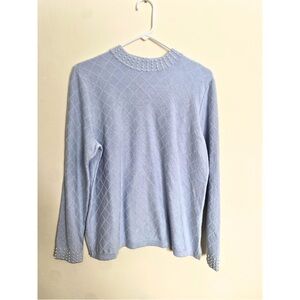 Leo & Ugo Light Blue Pearl Embellished Knit Top