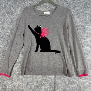 Leo & Ugo Paris Gray Sweater Women’s Black Cat Bow Graphic Long Sleeve Size 4