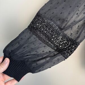Leo & Ugo Paris Mock Neck Textured Lightweight Sweater Top Sheer Arms Black 4