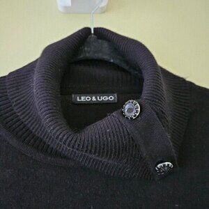 Leo & Ugo Paris women's sweater with accented argyle print on a front and 2 button cowl collar which can be worn closed or spread