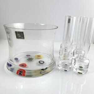 Leonardo Murano Millefiori Ice Bucket w/ Vodka Shooter Shot Glasses Chiller Set