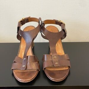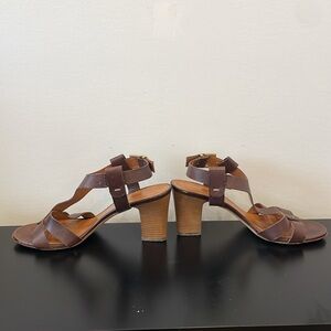 Leonardo Principi Vero Cuoio brown leather heel sandals strap Italy 40 (9)