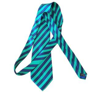 Leonardo Strelli by Tie Rack Silk Tie Green Navy Stripe Made in Italy