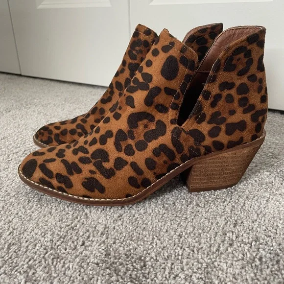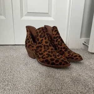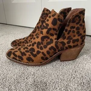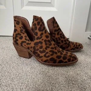 Leopard booties purchased from the states. Has a cute cut out. These have minor scuffs at the back on the heel part. Otherwise in good condition. Women’s size 7.