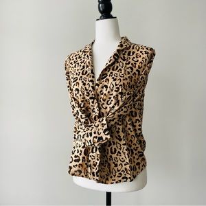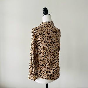Button Down in 100% viscose fabric in stylish leopard animal print with a collar, buttons at front and on sleeves.