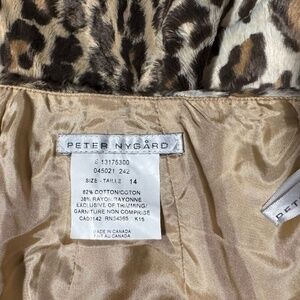 Fierce meets feminine in this high-waisted faux fur leopard print skirt by Peter Nygard. With its vintage-inspired cut and luxuriously soft texture, this fully lined pencil skirt blends 90s glam with timeless elegance. The bold animal print makes it a statement piece for fall layering or a transitional summer look with a cropped tee or tank.