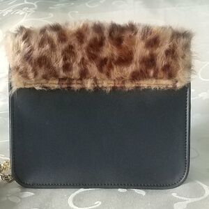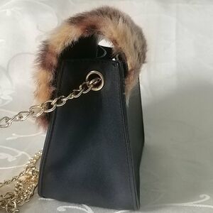 A pochette with sleek metal and fluffy faux fur that creates luxurious mood.