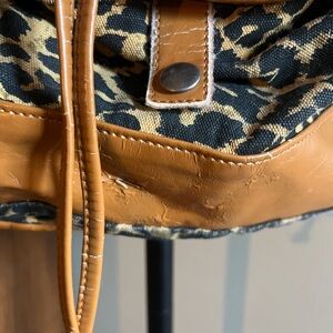 Well worn but still some life left! Super cute leopard print backpack with front pocket and inside zipper pocket.