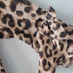 Stylish leopard print blouse with bow sleeves. Perfect for a chic look.