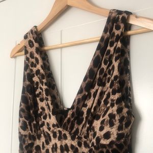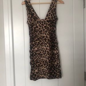 Deep V leopard print dress! Side ruching detail for flattering fit with all body types!!