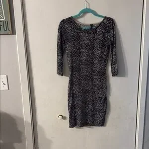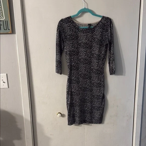 This stylish leopard print bodycon dress is perfect for any occasion. The black and gray pattern adds a chic touch to your wardrobe. Ideal for a night out or a casual day.