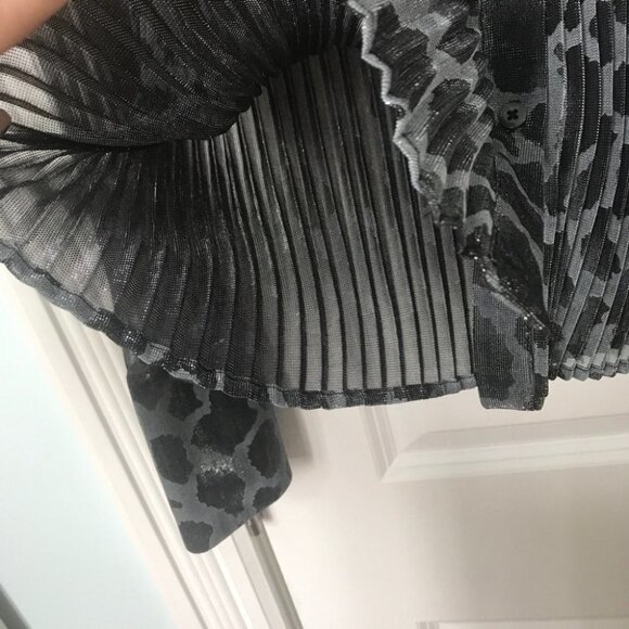 Stylish gray leopard print button down shirt. Perfect for a chic and modern look.