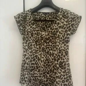 Stylish leopard print top with a button-up front. Perfect for adding a wild touch to your wardrobe.