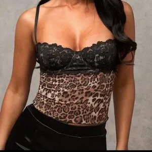 lace leopard print cropped top