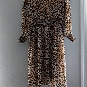 Lined polyester leopard print dress with button closure at back of neck. Worn once.