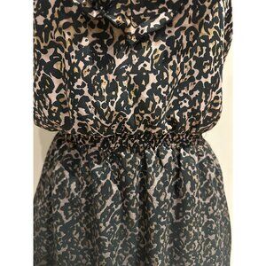 Leopard Print Dress Womens Size XS Ruffle Neckline Elastic Waist