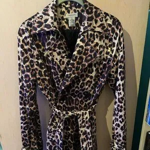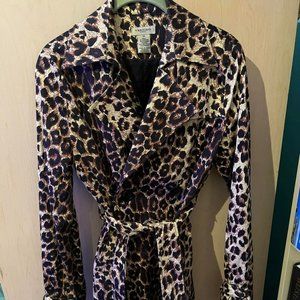 This delightful coat has a lovely leopard print and has belt that ties around the waist or can simply be buttoned up. See tag for additional information!