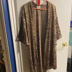 Stylish leopard print kimono robe. Perfect for lounging.