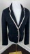 Leopard Print Lined Cropped Navy Blazer XS/S Contrast Trim Tailored Jacket