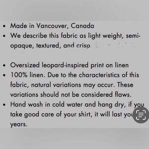 Beautiful linen. Oversized fit, very comfortable for lounging, sleeping, or over a bathing suit.