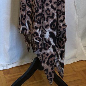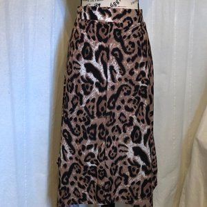 Leopard Print Midi Skirt with Sharkbite Hem - Large
