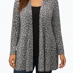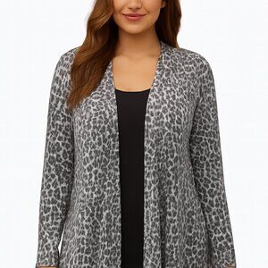 Leopard Print Open Cardigan Soft Drape Fit Fall Staple Layering Piece Size 12