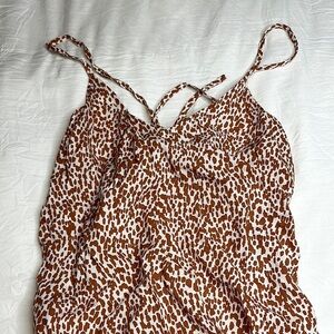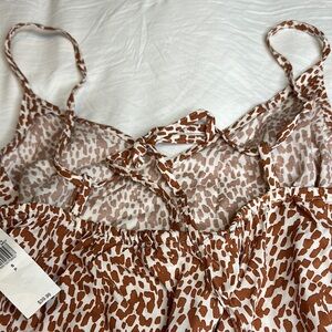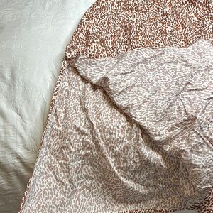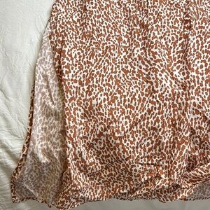 Brand new, tags attached. No rips, stains, tears or damages. No fading or pilling. Colour is whit ends burnt orange leopard print. Maxi length with a slit on both sides. Great for a summer day or beach vacay as it is super flowy and cool.