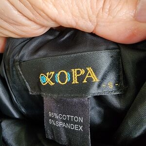 Features pockets, gathered skirt, stretch thin belt.