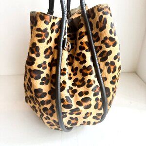 Stylish leopard print tote bag featuring elegant black accents. Perfect for adding a bold touch to any outfit.