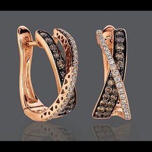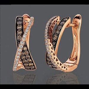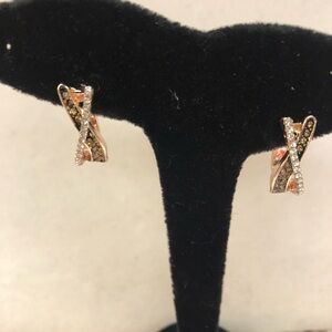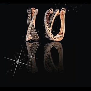 Elegant and exotic! Hematite and clear crystals set into 18k electroplated rose gold hoops NWT Gift bagged