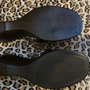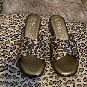 Experience the perfect blend of style and comfort with these Italian Shoemakers sandals, featuring a sleek single strap design in rich brown and black hues. The slip-on style make them ideal for casual outings, while the open toe adds a touch of elegance to your look. BRAND NEW never worn. Shoe has 2 inch heel NOTE** price is FIRM.