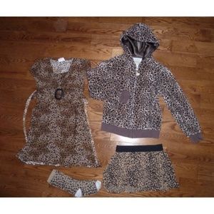 Leopard lot size 8-10 - Old Navy socks + skirt size 8, Jessie Girl dress size 8-10 and Arizona zipped up hoodie size 10-12. All in excellent condition