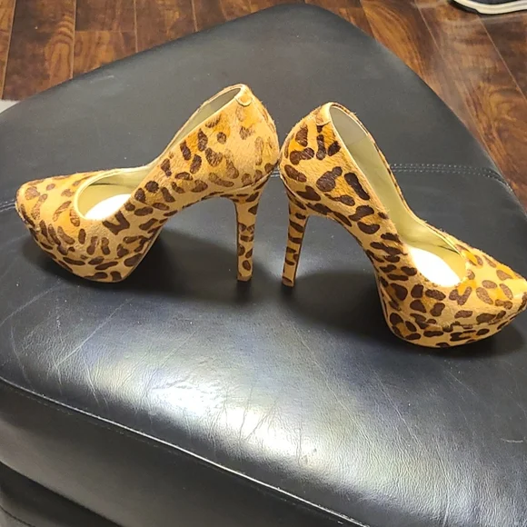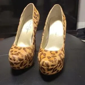 Jessica simpson leopard print, real hair platform heels. have been worn once, still in excellent condition. small mark on front toe as shown in pic. size 8b (38) Stunning!! 🤩
