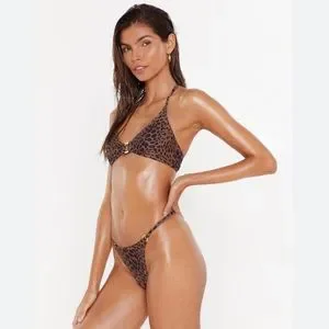 Leopard print bikini with hoop detail. Adjustable straps. Comfortable and flattering, fun pattern for the summer