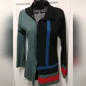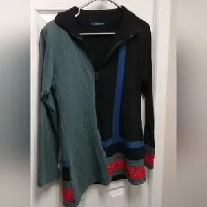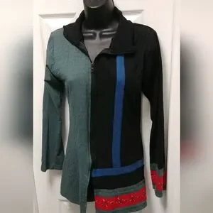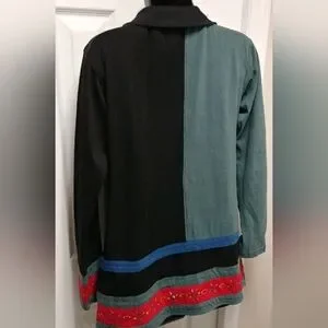 🌼 Leopards and Roses jacket. Hand painted, off centered zippered front, long sleeved, blue black red. 100% cotton, made in Nepal