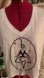 White V-neck tee with a bold graphic design in black. Casual and stylish. Great with a pant suit.