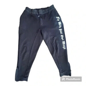Each pant leg has zipper at ankles, zipper fly, and button up with elastic waistband. Two front deep pockets, and two back pockets. “Fly with your own wings “ from the 2017/18 collection. Featured in Vogue magazine. Made with 100% cotton.