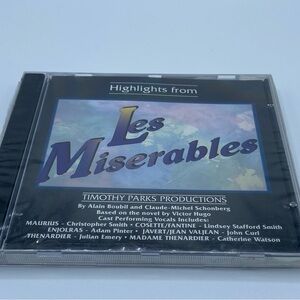 Dive into the timeless story of valor and redemption with the "Les Miserables Highlights" CD by Timothy Parks Productions. This album features a collection of stirring performances that capture the essence of one of literature's most beloved characters, set against the backdrop of 19th-century France. The CD, presented in a standard jewel case, is a must-have for fans of soundtracks and musicals, offering a black legacy of melodious craftsmanship.