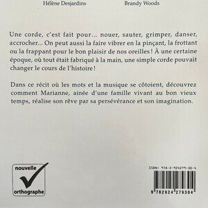 Des codes QR sur chaque page renvoient vers des chansons par l'autrice! Une corde, c'est fait pour… nouer, sauter, grimper, danser, accrocher... On peut aussi la faire vibrer en la pinçant, la frottant ou la frappant pour le bon plaisir de nos oreilles! A une certaine époque, où tout était fabriqué à la main, une simple corde pouvait changer le cours de l'histoire! Dans ce récit où les mots et la musique se côtoient, découvrez comment Marianne, ainée d'une famille vivant au bon vieux temps, réalise son rêve par sa persévérance et son imagination. 24 pages.