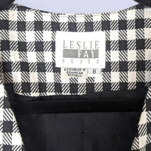This overcoat by Leslie Fay comes in a bold black and white check and is a staple piece. Featuring shoulder pads, a single front button closure, and two front pockets, this very-square jacket has a strong retro vibe to it.