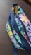 Lively & uplifting colorful retro pop art style flower blooms artfully arranged in tropical colors: soothing aqua, sunny yellow, juicy raspberry, sweet lilac, light pink & crisp white. Harmonious hues create a whimsical garden set amid a classic navy blue bag & features a subtle sheen.