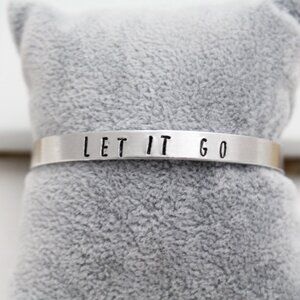 Let It Go - Hand Stamped Anodized Aluminum Bangle - Adjustable